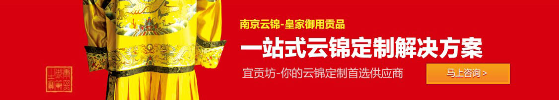 南京宜貢坊云錦文化科技有限公司成立于二OO一年,場地面積10000㎡,致力于做中國知名的云錦,宜貢坊云錦文化科技有限公司座落于江寧開發(fā)區(qū)。做為江蘇云錦文化科技品牌之一,南京宜貢坊擁有雄厚的技術力量和實力,現有大型傳統(tǒng)花木樓織機幾十臺,織造師、研究設計人員數百人。公司擁有直屬北京、深圳、上海辦事處和近千家緊密經銷商、合作商;產品在南京中央商場、新百、上海八百伴、上海友誼商場,泰州金鷹等全國多家大型商場均有專柜。